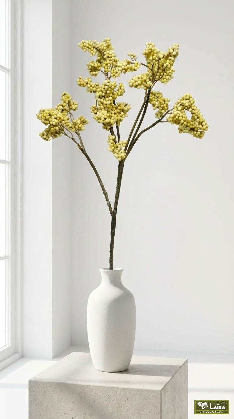 Ανακαλύψτε την απαράμιλλη κομψότητα της Σορβίας Κρεμ Κασιμίρ Ιάνα, ενός διακοσμητικού άνθους που προσδίδει μια αίσθηση πολυτέλειας και φυσικής ομορφιάς στον χώρο σας. Με εντυπωσιακό ύψος 117 εκατοστών, το συγκεκριμένο τεχνητό λουλούδι αποτελεί την ιδανική επιλογή για να αναβαθμίσετε τη διακόσμηση του σαλονιού, της τραπεζαρίας ή του επαγγελματικού σας χώρου. Η προσεγμένη κατασκευή του αποδίδει με απόλυτη πιστότητα την υφή και την κίνηση του φυσικού άνθους, προσφέροντας ένα οπτικά άρτιο αποτέλεσμα που διατηρεί τη ζωντάνια του καθ’ όλη τη διάρκεια του χρόνου. Η κρεμ απόχρωση του κασιμίρ προσδίδει μια διαχρονική φινέτσα, καθιστώντας το εξαιρετικά ευέλικτο σε κάθε στυλ διακόσμησης, από το κλασικό μέχρι το μοντέρνο minimal. Η Σορβία Κρεμ Κασιμίρ Ιάνα δεν απαιτεί καμία συντήρηση, προσφέροντας μια μόνιμη λύση φρεσκάδας και χρώματος. Είτε τοποθετημένο μόνο του σε ένα ψηλό βάζο είτε ως μέρος μιας μεγαλύτερης σύνθεσης, το προϊόν αυτό αναδεικνύεται σε ένα από τα πιο αγαπημένα κομμάτια της συλλογής μας. Προσθέστε μια πινελιά υψηλής αισθητικής στο περιβάλλον σας με ένα αντικείμενο που συνδυάζει την ποιότητα κατασκευής με τον κομψό σχεδιασμό.